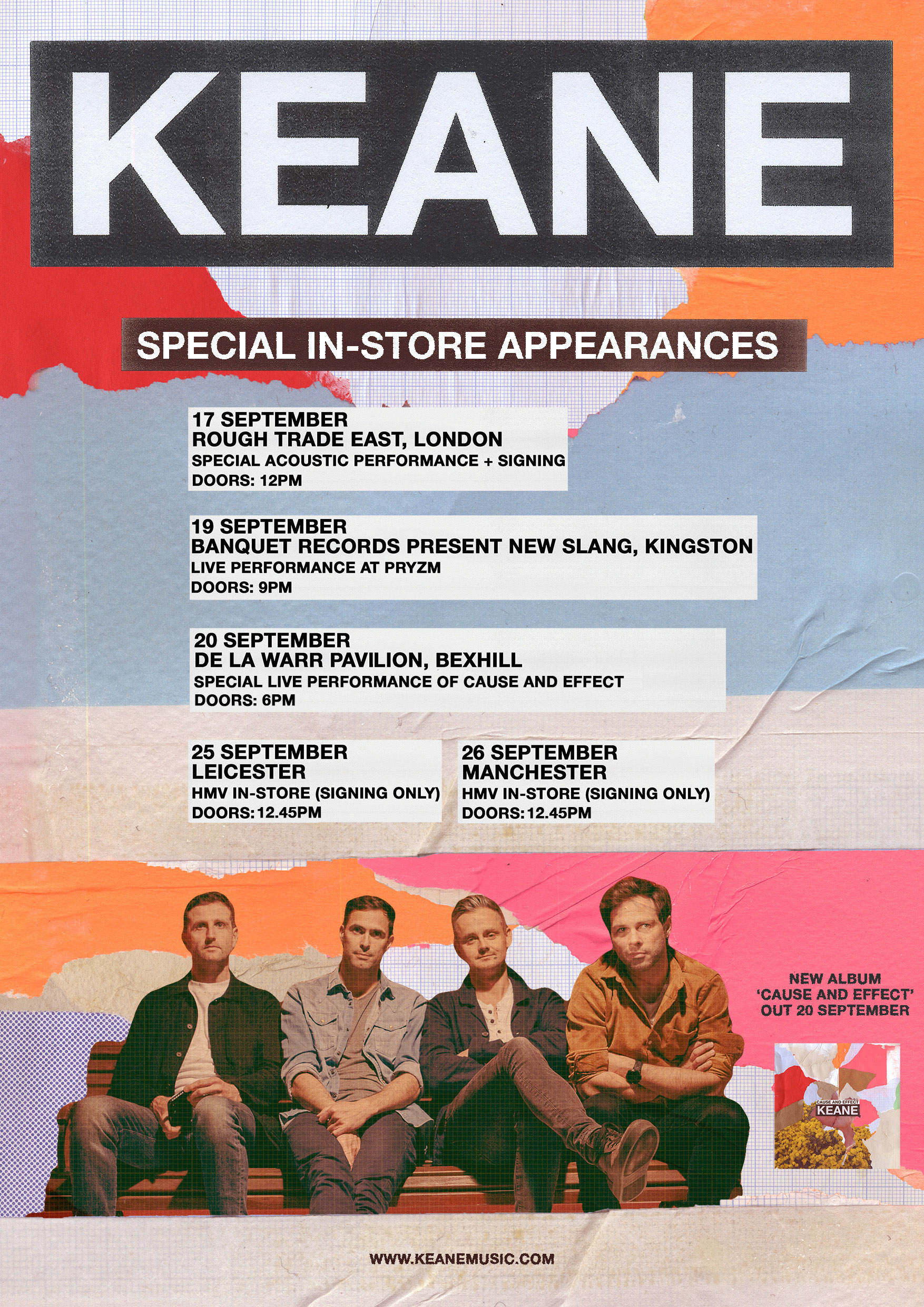 To celebrate the release of Cause and Effect, our new album, we will be visiting a few record stores around the country in September.